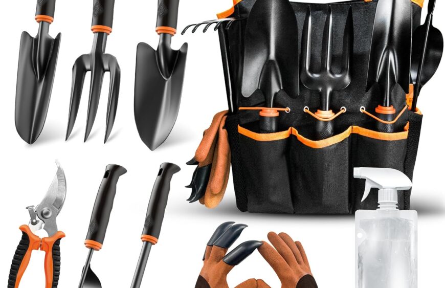 Garden Tool Set 10Pcs, Heavy Duty Gardening Tool Set, with Non-Slip Rubber Grip, Durable Garden Tools Organizer Handbag, Outdoor Hand Tools, Ideal Gardening Tool Kit Gifts for Women and Men