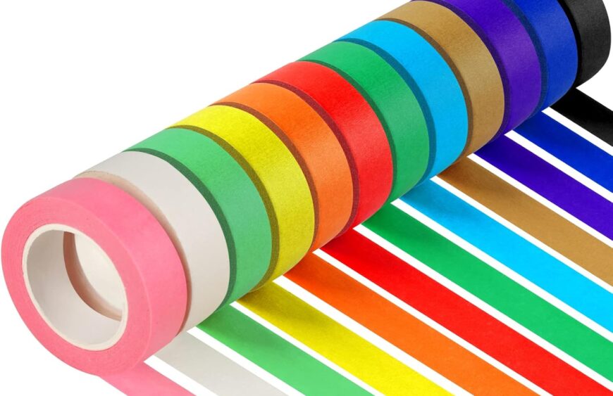 12 Colored Masking Tape: They come in yellow, purple, black, white, pink, orange, light green, dark green, red, light blue, dark blue, and brown. The colors are very rich and vibrant. Your kids and you will find that these craft tapes are exactly what you were looking for!